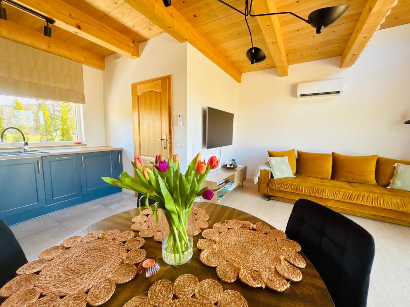 Dom z 1 sypialnią. This holiday homes standout feature is the sauna. Guests will find a stovetop, a refrigerator, a dishwasher and kitchenware in the well-equipped kitchenette. The holiday home also has a barbecue. The air-conditioned holiday home offers a flat-screen TV with streaming services, a private entrance, a tea and coffee maker, a seating area as well as garden views. The unit offers 2 beds. Dom wakacyjny - 4 osobowy. Powierzchnia pokoju ok.: 35 mkw.