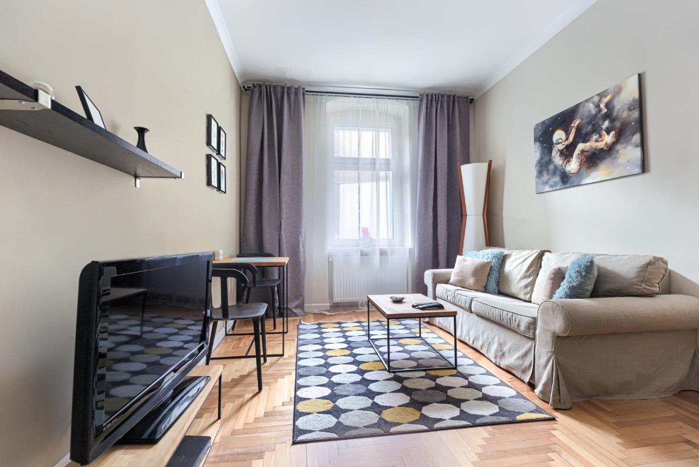 Apartament z 1 sypialnią. This apartment comprises 1 living room, 1 separate bedroom and 1 bathroom with a shower and free toiletries. Meals can be prepared in the well-fitted kitchen, which comes with a stovetop, a refrigerator, kitchenware and a tea and coffee maker. This apartment features a seating area, TV, ancourtyard view, as well as chocolate for guests. The unit offers 2 beds. Apartament - 4 osobowy. Powierzchnia pokoju ok.: 35 mkw. ;