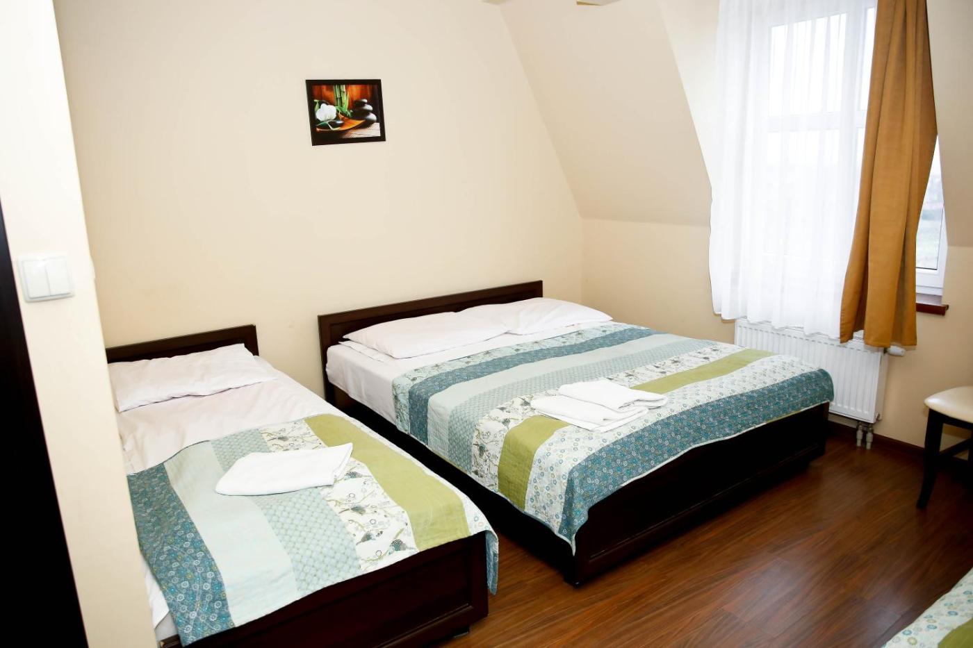 Pokój trzyosobowy. Offering free toiletries, this triple room includes a private bathroom with a shower. The triple room offers soundproof walls, a wardrobe, parquet floors, heating and a flat-screen TV. The unit has 2 beds. Pokój Trzyosobowy - 3 osobowy. Powierzchnia pokoju ok.: 15 mkw. ;